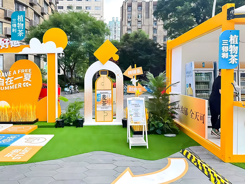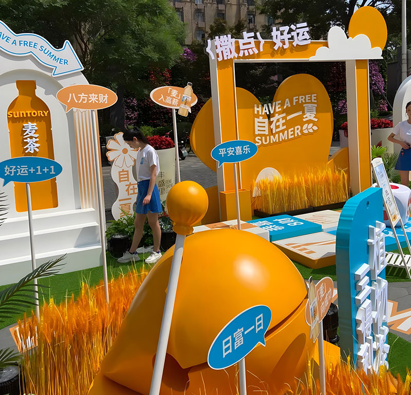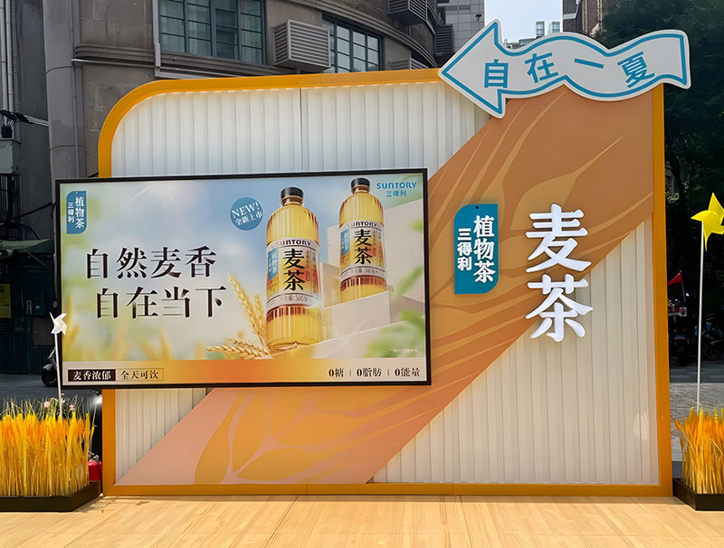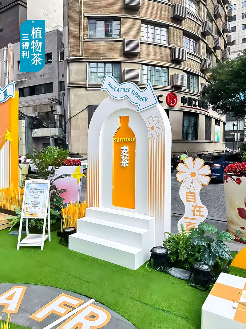 三得利麥茶在上海吳江路的自在一夏快閃,chao酷的!現(xiàn)場chao多福利,入口處的巨型麥茶瓶,有被一眼帥到,顏色好靚~好愛現(xiàn)場chao大的木魚,好有氛圍感,互動性好強(qiáng),好出片!